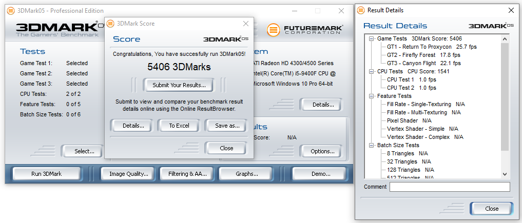- 3DMARK05 – GT1 = 25.7 fps