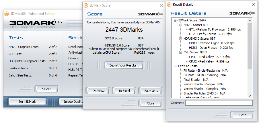 - 3DMARK06 – SM3.0 = 887 (HDR)